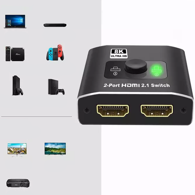 Ez a termék a legújabb chipet alkalmazza, és alumíniumötvözet anyagból készül, korróziógátló szerkezettel, ellenáll a túlmelegedésnek vagy törésnek, tartósabb és praktikusabb. A HDMI-kapcsoló a legtöbb szabványos HDMI-csatlakozóval rendelkező eszközt támogatja.