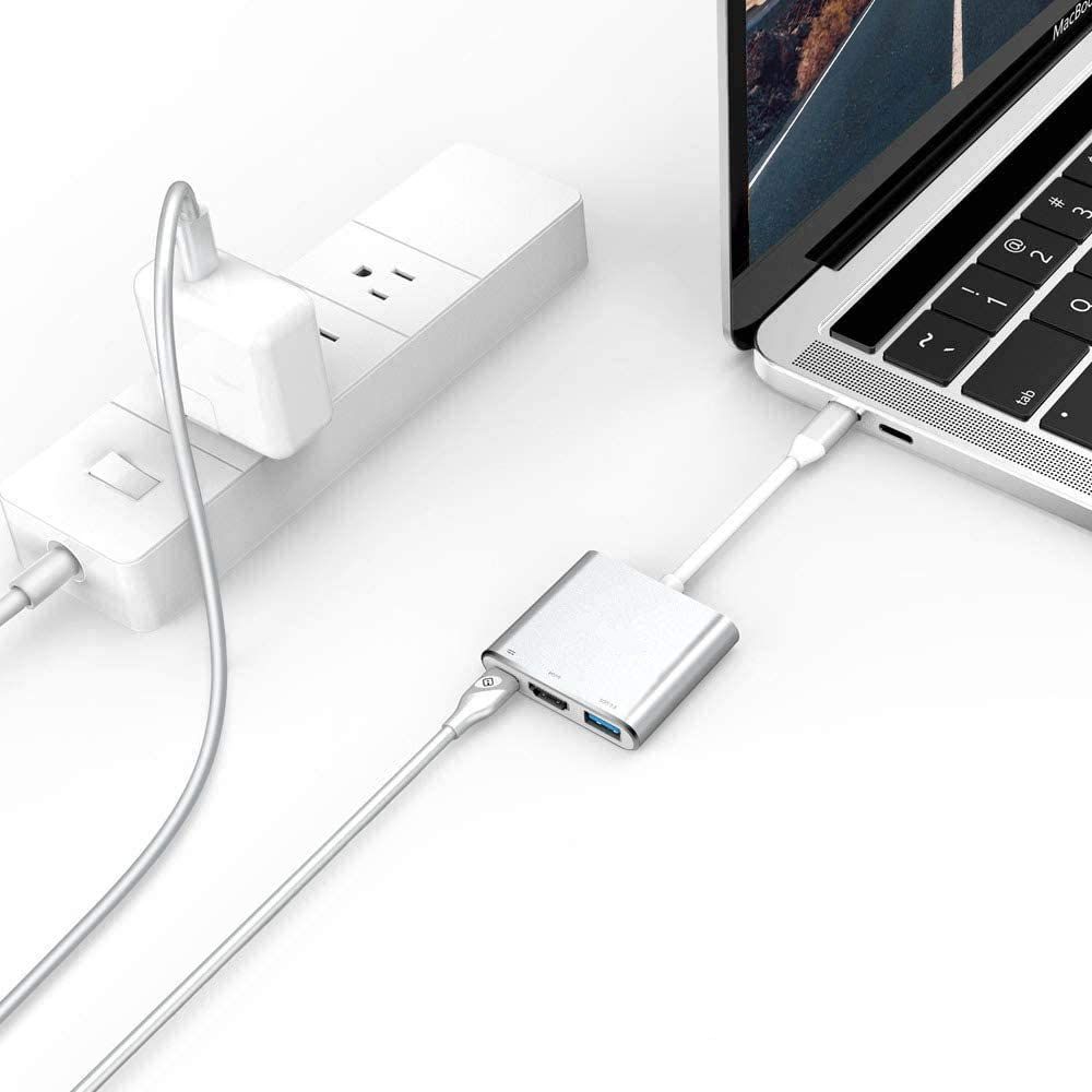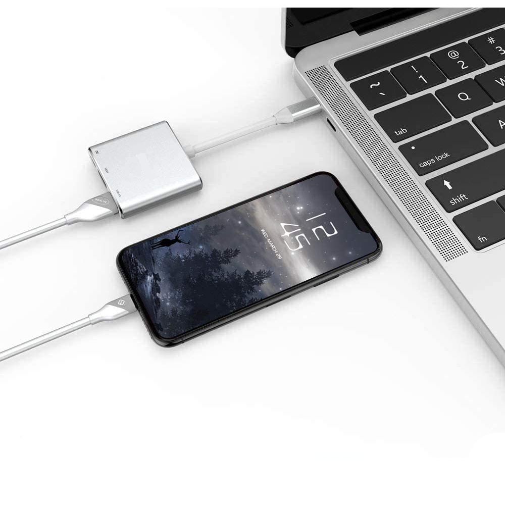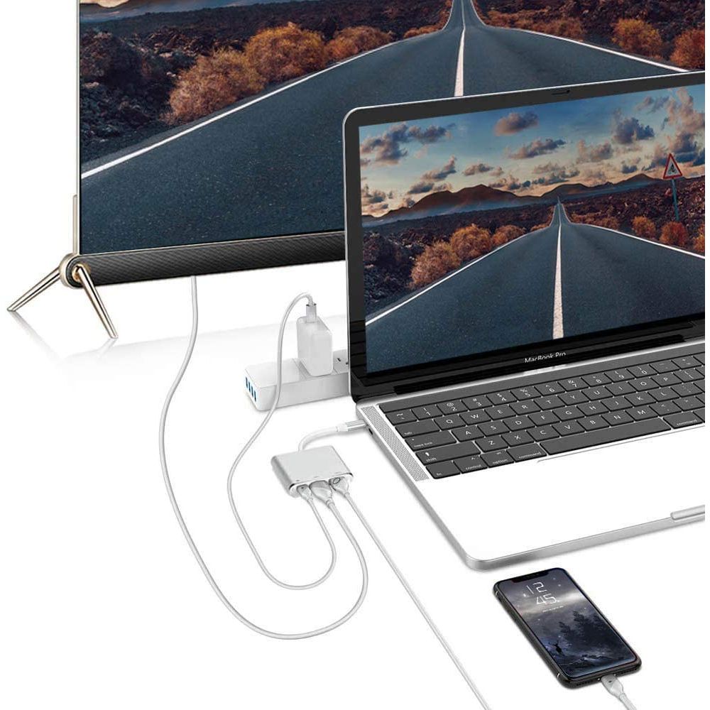Ez a HDMI-porttal és C típusú hordozható adapter lehetővé teszi három eszköz egyidejű csatlakoztatását, és helyettesíti a laptop egyportos kialakítását. A kompakt kialakításnak köszönhetően könnyen hordozható a zsebében. A 3 az 1-ben adapterrel elkerülhető a több eszköz szállításával járó gond.