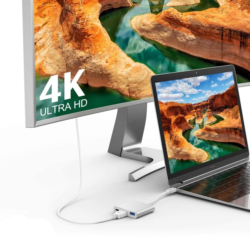 Ezzel az USB-C adapterrel USB-C porttal rendelkező laptopját HDMI-kijelzőhöz csatlakoztathatja. Nézze meg a 4K videókat monitoron/kivetítőn/TV-n számítógépéről, tökéletes házimozihoz, irodához, bemutatóhoz, kiállításhoz, tanításhoz stb.