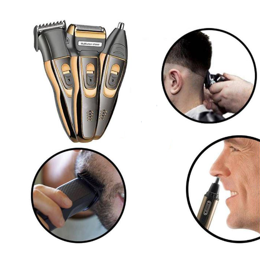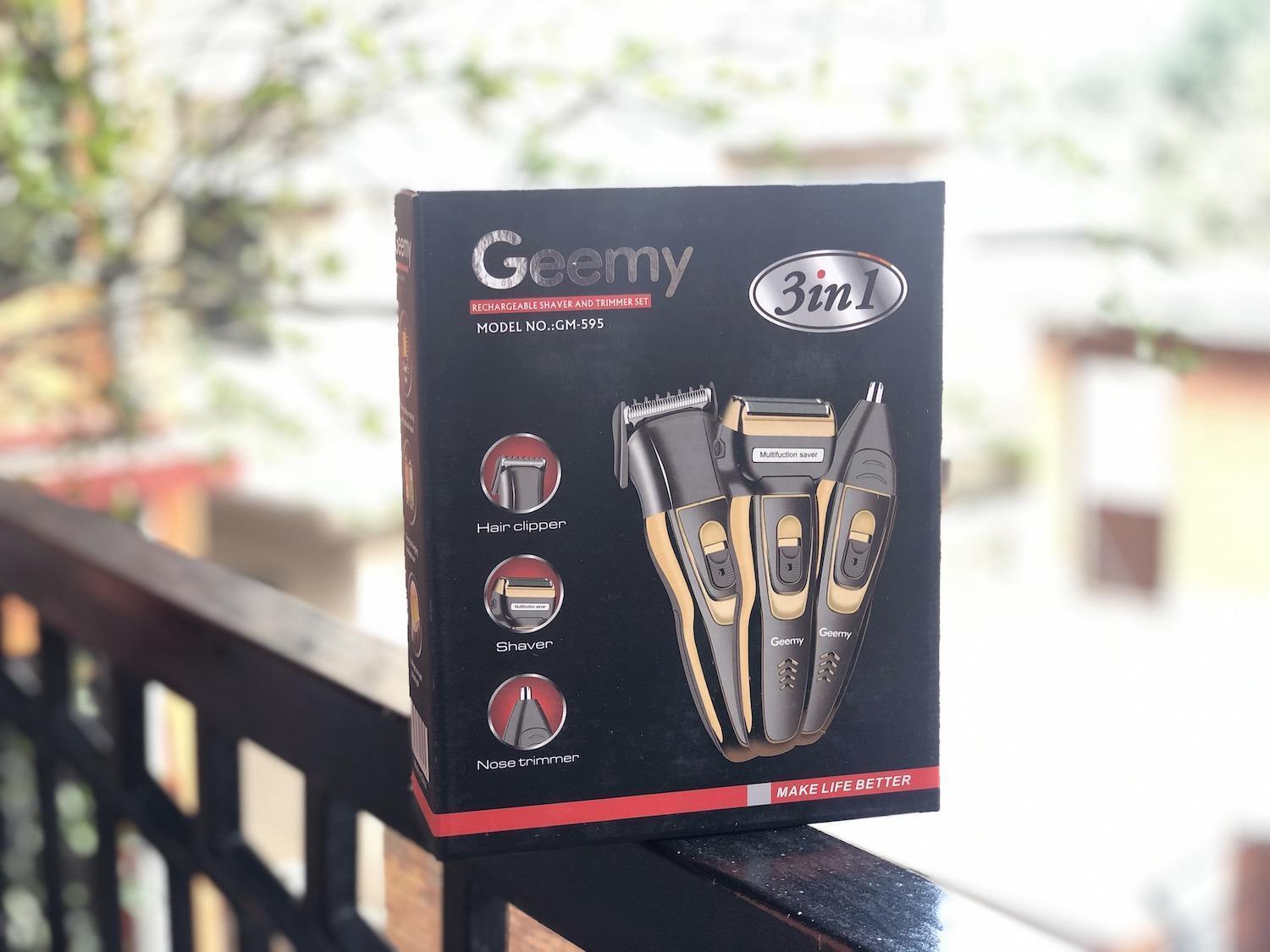 A Geemy GM595 3 az 1-ben többfunkciós trimmer 1 be-/kikapcsoló gombbal és 2 cserélhető fejjel van felszerelve.