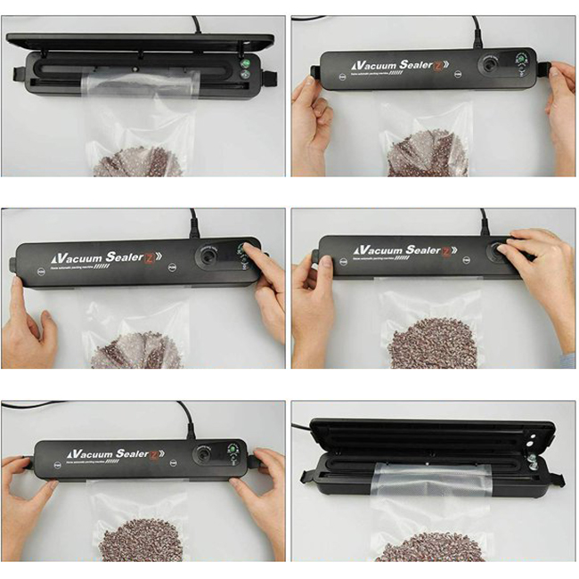 Könnyen használható és kompakt kialakítású, ez a záró- és porszívó berendezés lehetővé teszi az élelmiszerek gondos lezárását, és sokkal hosszabb ideig frissen és ízletesen megőrzi. A tömítés és a porszívózás megakadályozza a penész és a baktériumok kialakulását, megőrzi az ételek ízét és csökkenti a romlást, így tízszer frissebb ételei lesznek, mint a klasszikus csomagolásban.