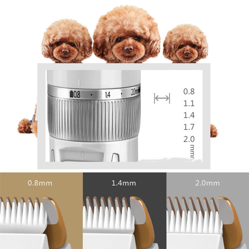A készüléken elhelyezett állítható fogantyú lehetővé teszi 5 különböző vágási hossz kiválasztását a szőrme vágás típusától függően: 0,8 mm / 1,1 mm / 1,4 mm / 1,7 mm / 2,0 mm.