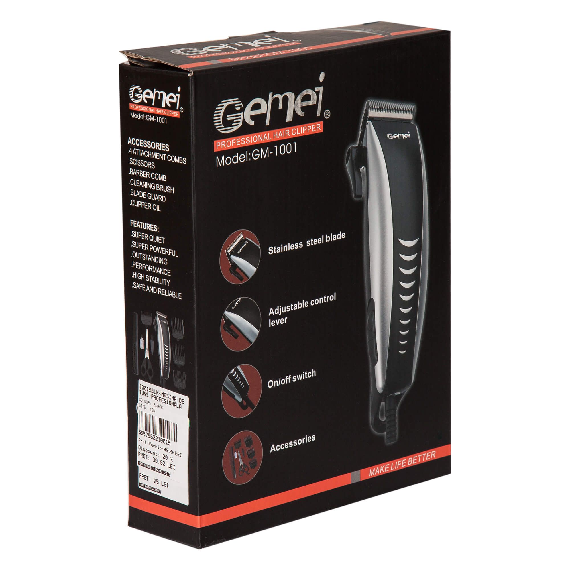 Geemy GM-1001 Clipper, 3-12 mm, 4 lépcsős, fekete/szürke