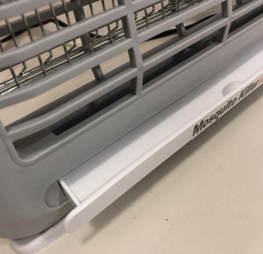 A rovarriasztó készülék ultraibolya fénye vonzza a repülő rovarokat, majd a belső nagyfeszültségű rács elpusztítja őket.