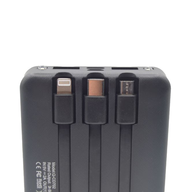 A CD702 külső akkumulátor egy egyedülálló, hordozható töltőtartozék, amelyet kifejezetten telefonok és kompatibilis eszközök töltésére terveztek, három töltőkábellel.