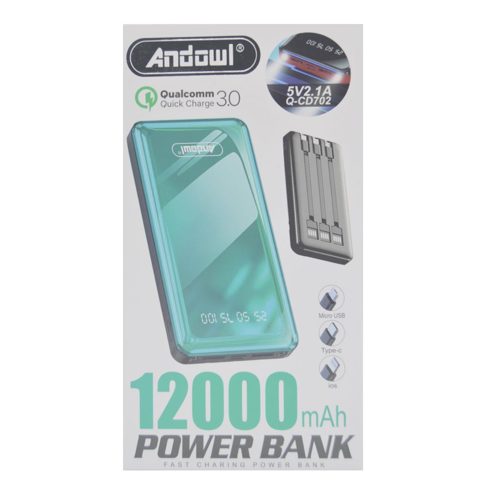 Külső akkumulátor 3 az 1-ben CD702, USB, LED kijelző, 12000mAh