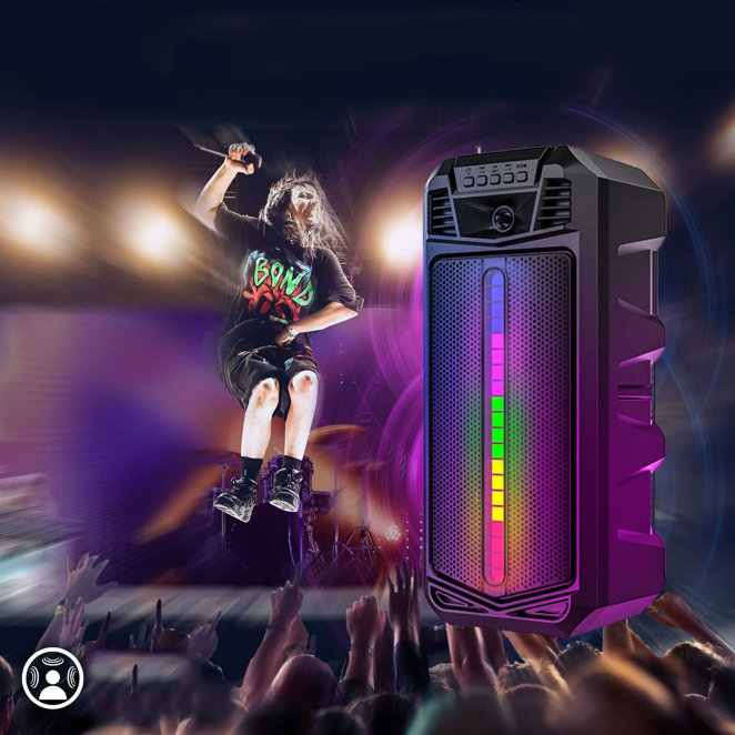 Könnyen használható: A hangszóró támogatja az FM-et, a TF-kártyát, a TWS-párosítást és a 6,35 mm-es mikrofon interfészt is. Többféle hanglejátszási mód, TWS sztereó hang és karaoke szépít és megkönnyíti az életét.