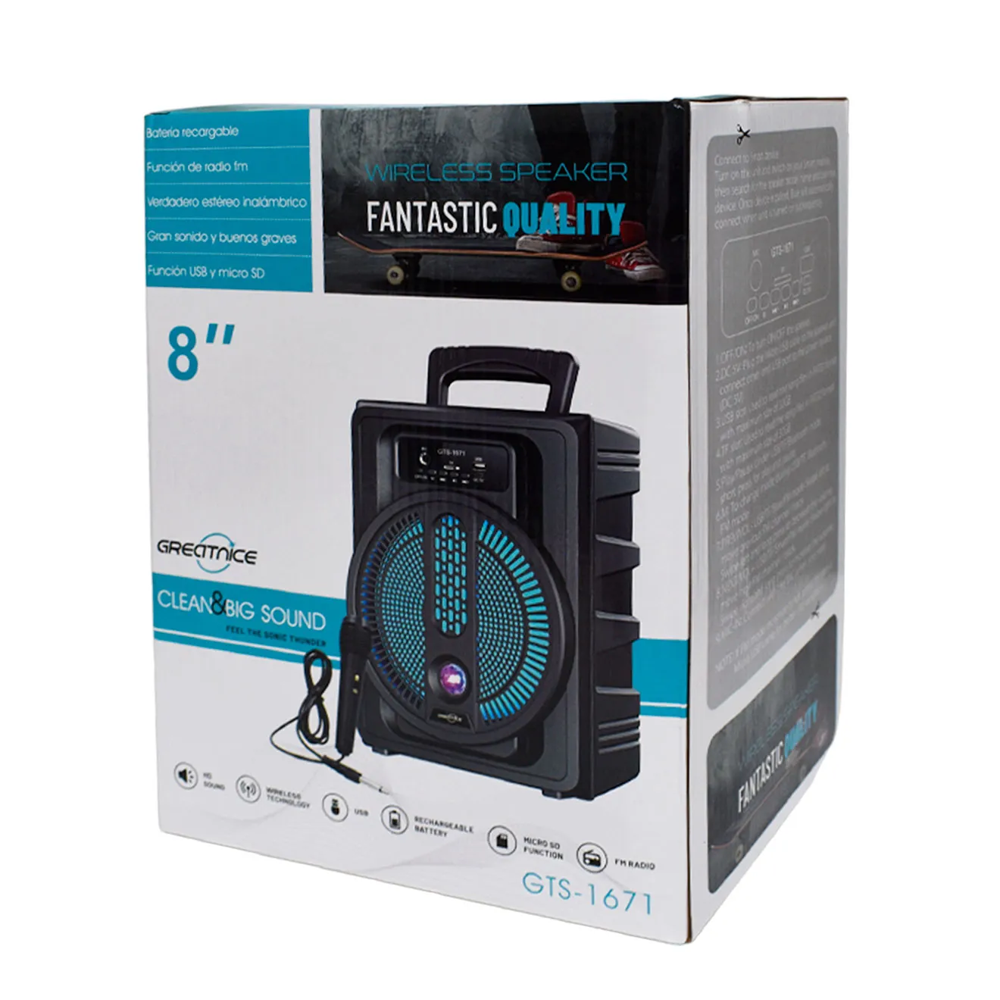 Vezeték nélküli hordozható hangszóró GTS1671, BT, fények,30W PMPO