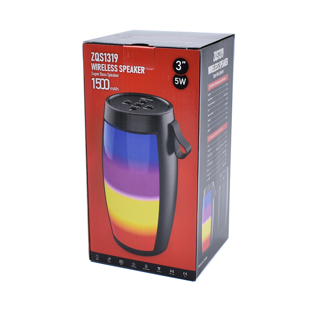 A ZQS1319 hordozható hangszóró MP3 lejátszóval USB/SD/AUX bemenettel és Bluetooth kapcsolattal rendelkezik, így egy sokoldalú, hordozható audiorendszerré válik, modern kialakítással és számos funkcióval.