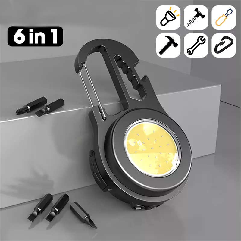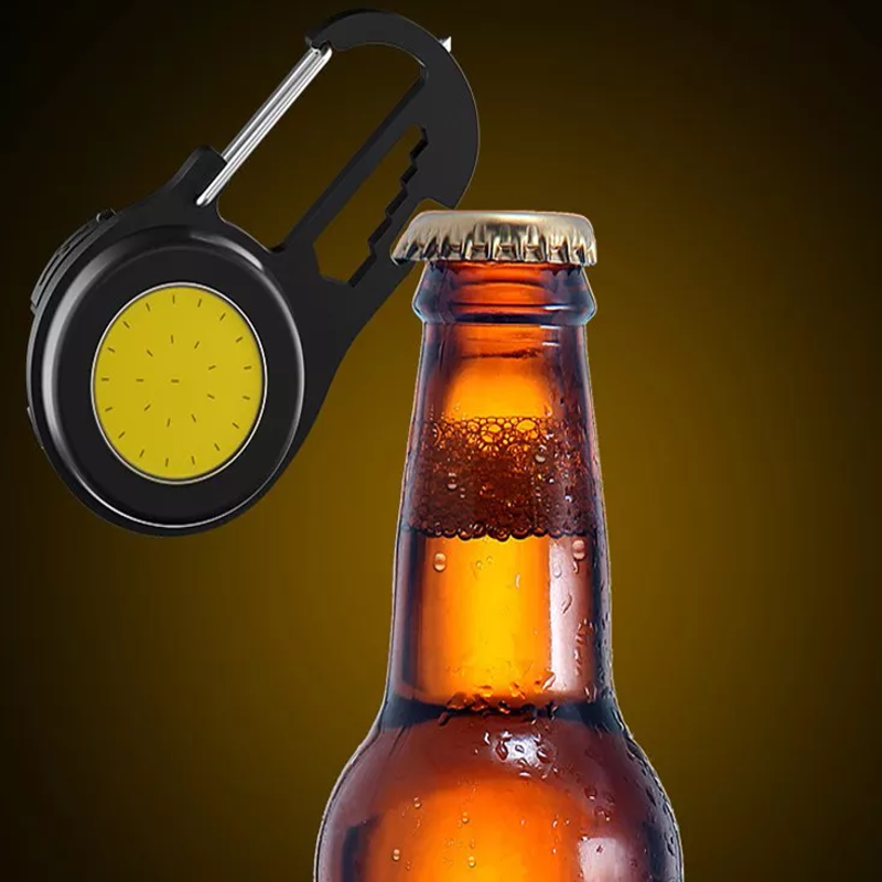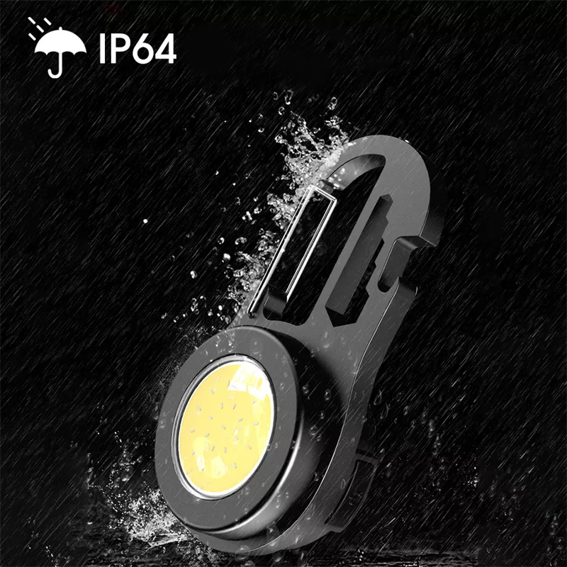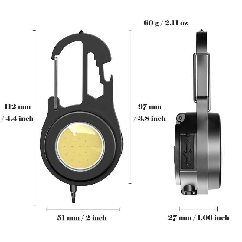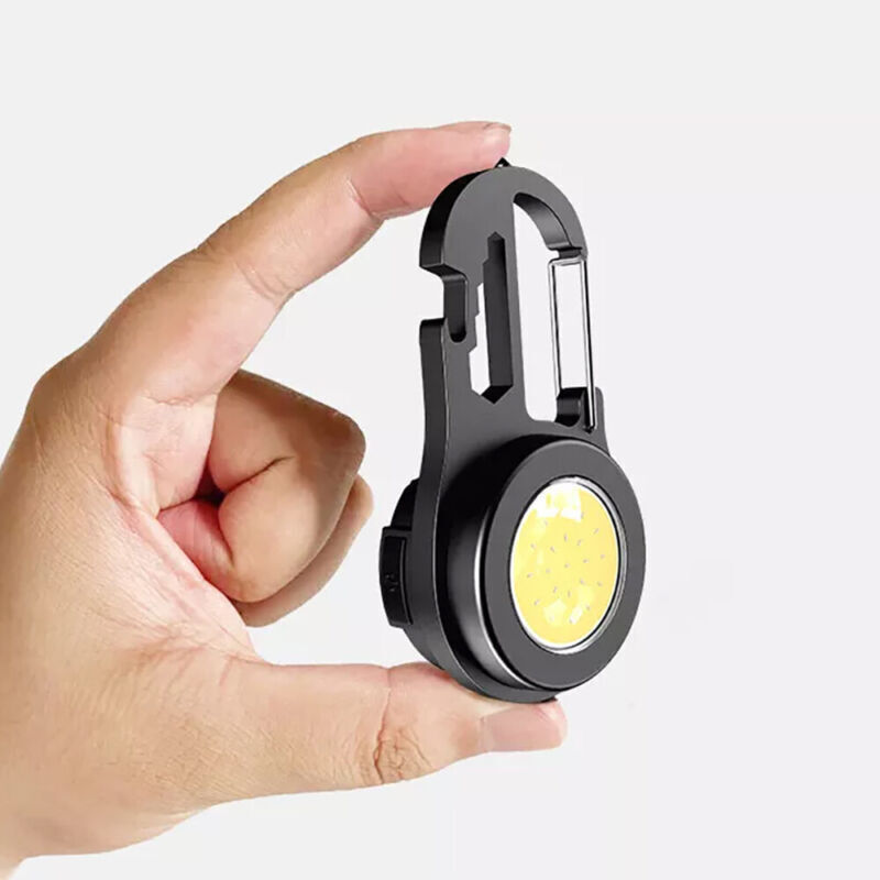 A kulcstartó 800 lumen fényerejű COB zseblámpával van felszerelve, amely olyan fényes szöget kínál, amely segít a sötét környezetben is.