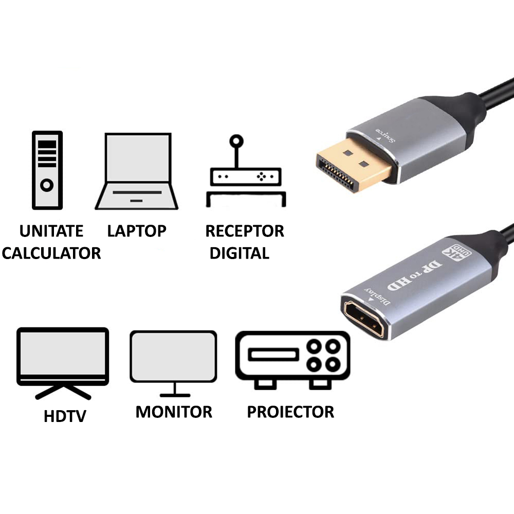 A hordozható átalakító asztali számítógép, laptop vagy más DisplayPort videóporttal rendelkező eszköz csatlakoztatására szolgál monitorhoz, projektorhoz, HDTV-hez vagy más HDMI porttal ellátott eszközhöz.