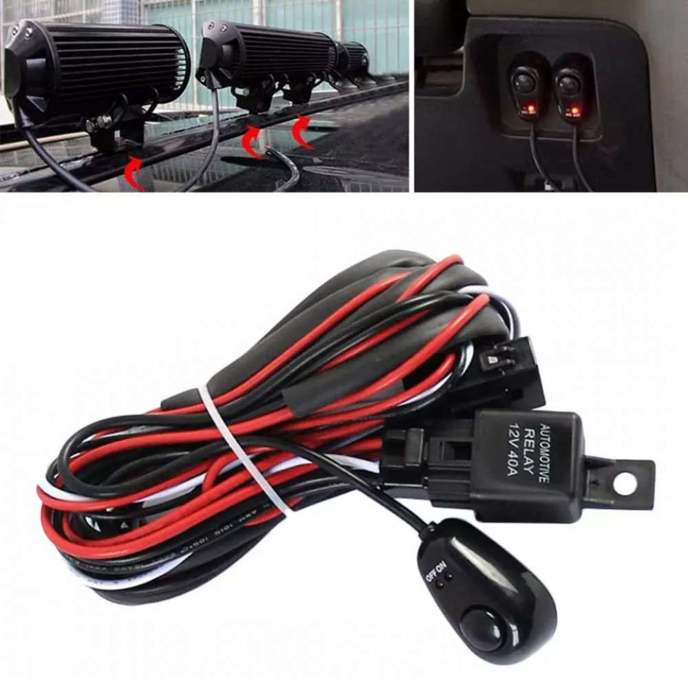 Az autós reflektor tápkábele alkalmas LED BAR és más projektor lámpák telepítéséhez. A készlet tartalmaz egy be-/kikapcsolót és egy 12V, 40A relét.