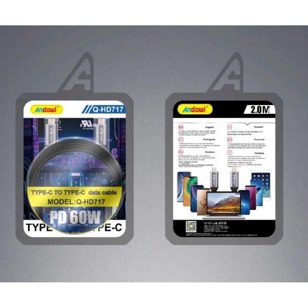 Adat-/töltőkábel, USB Type C – USB Type C, 60W, HD717