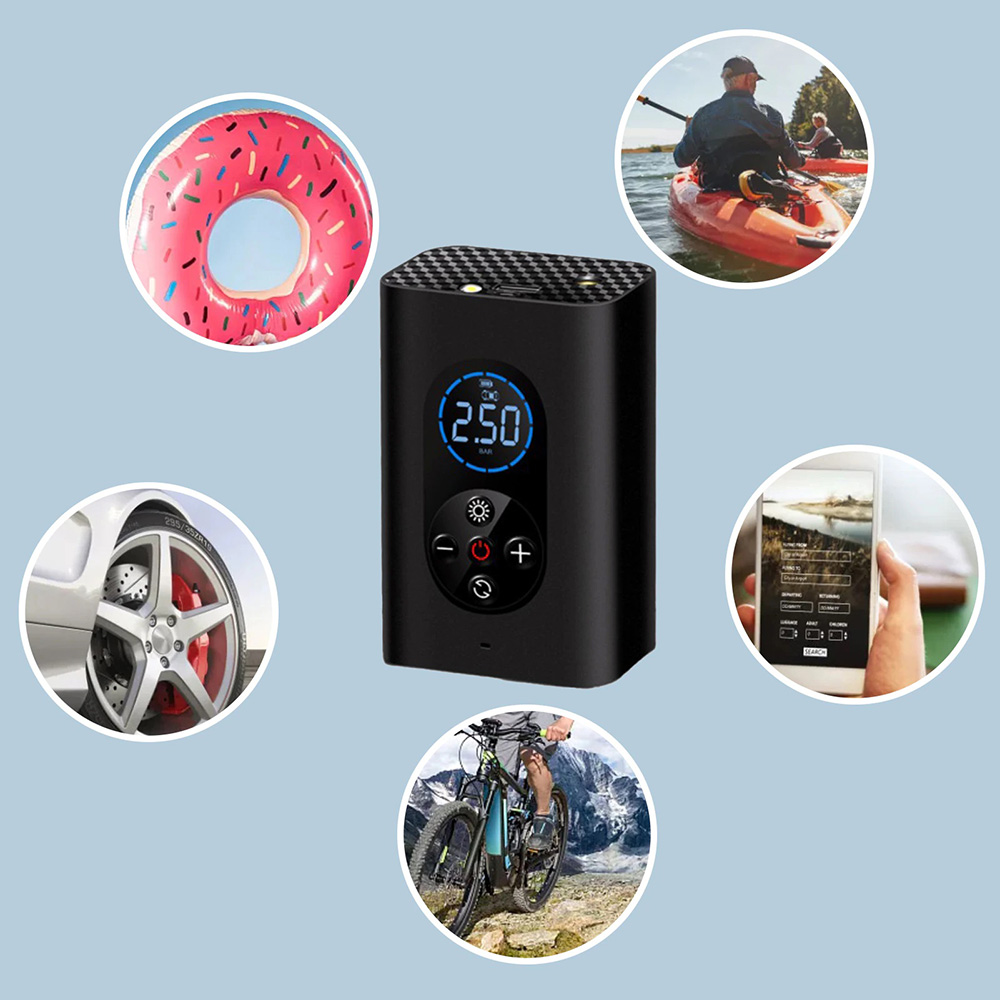 A digitális kompresszor egy erős készülék, amely nagyon rövid idő alatt és minimális erőfeszítéssel képes felfújni a kerékpár vagy motorkerékpár gumiabroncsát.