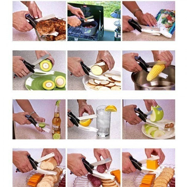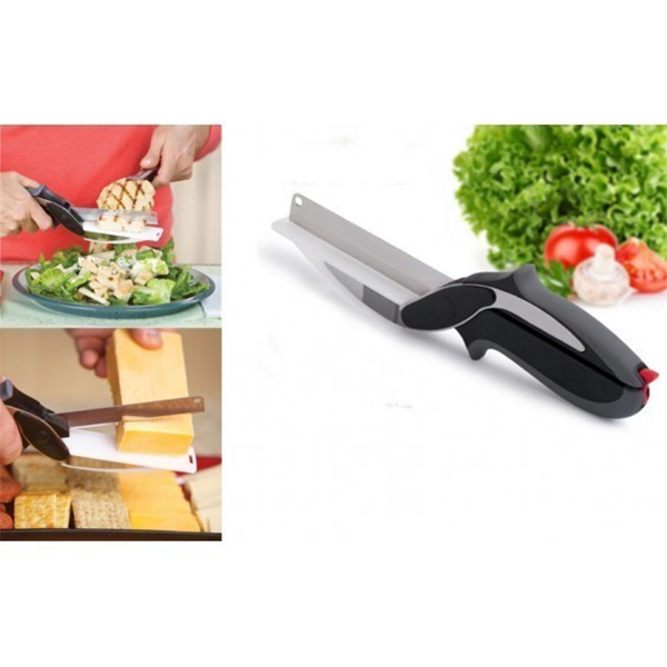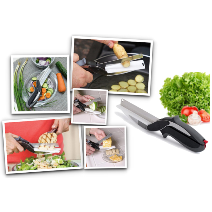 A 2 az 1-ben multifunkcionális konyhai olló vág, szeletel és aprít bármilyen zöldséget vagy gyümölcsöt, de akár húst vagy sajtot is.