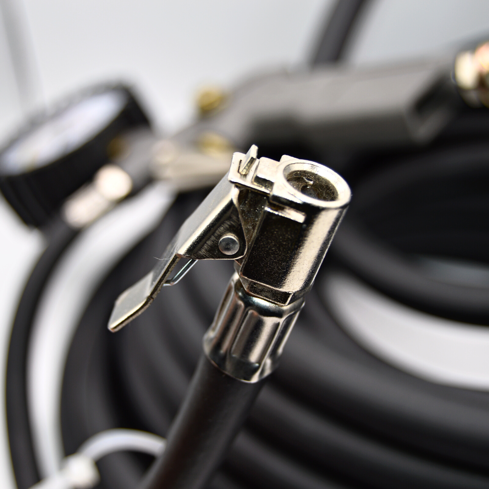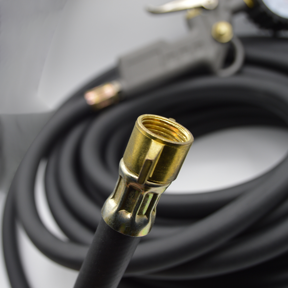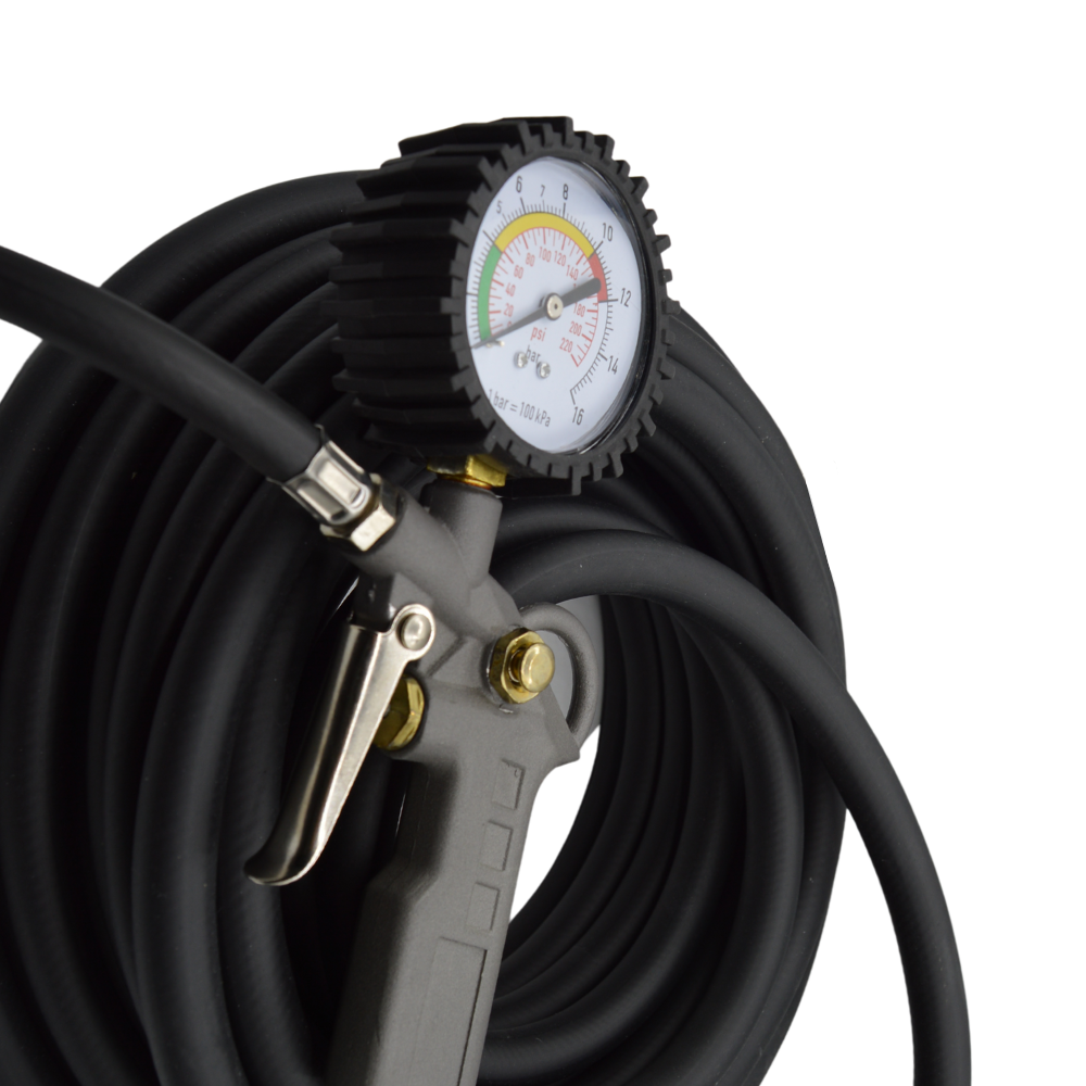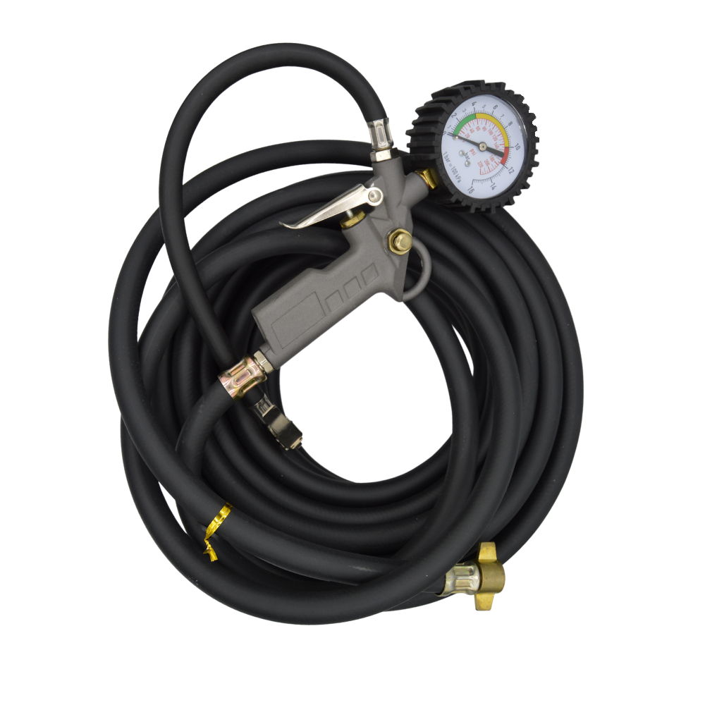 Ez a gumiabroncs-felfújó tömlő nyomásmérővel van felszerelve.