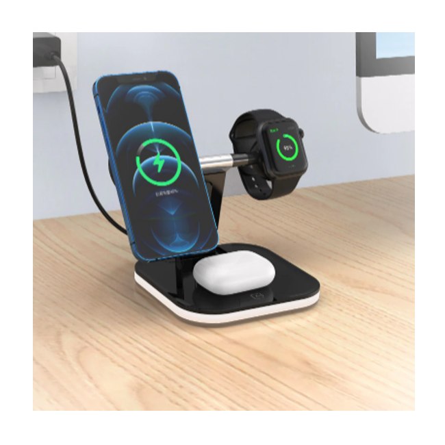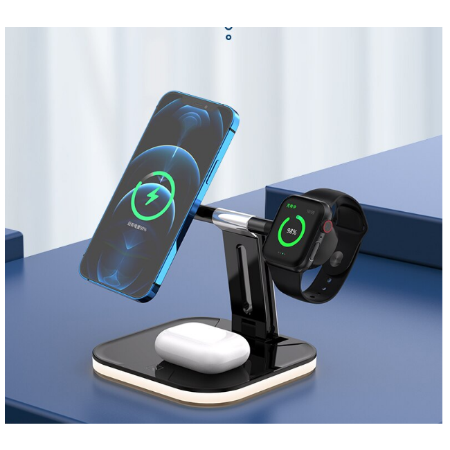 3 az 1-ben vezeték nélküli töltő LED világítással – telefon, óra, fülhallgató
