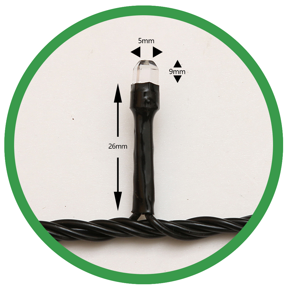 A fényfüzér 500 LED-del rendelkezik, elektromos árammal működik (220V / 50Hz), és beépített transzformátorral van felszerelve.