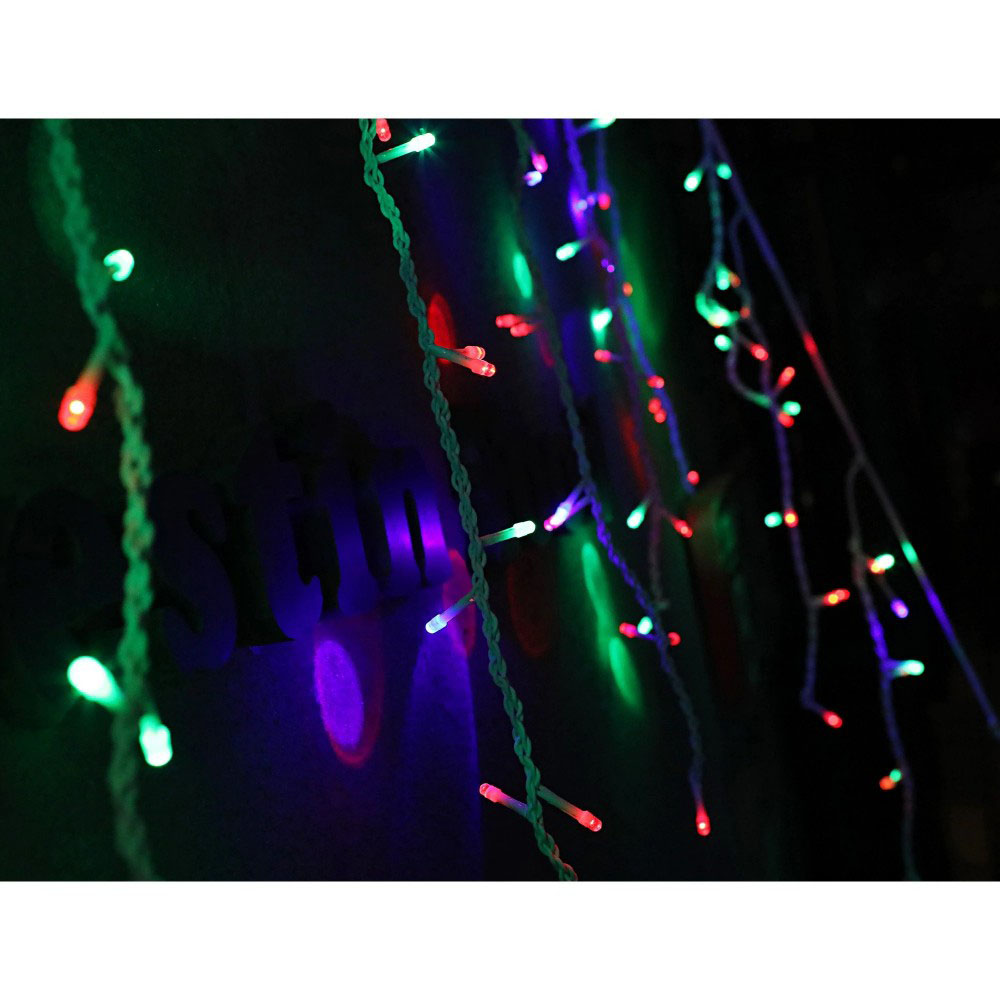 A karácsonyi fényfüzér jégcsap típusú, egyenlőtlen és egymáshoz csatlakoztatható rojtos függöny. A rojtos szálak hossza három különböző méretben eltérő: 30 cm, 50 cm és 60 cm.