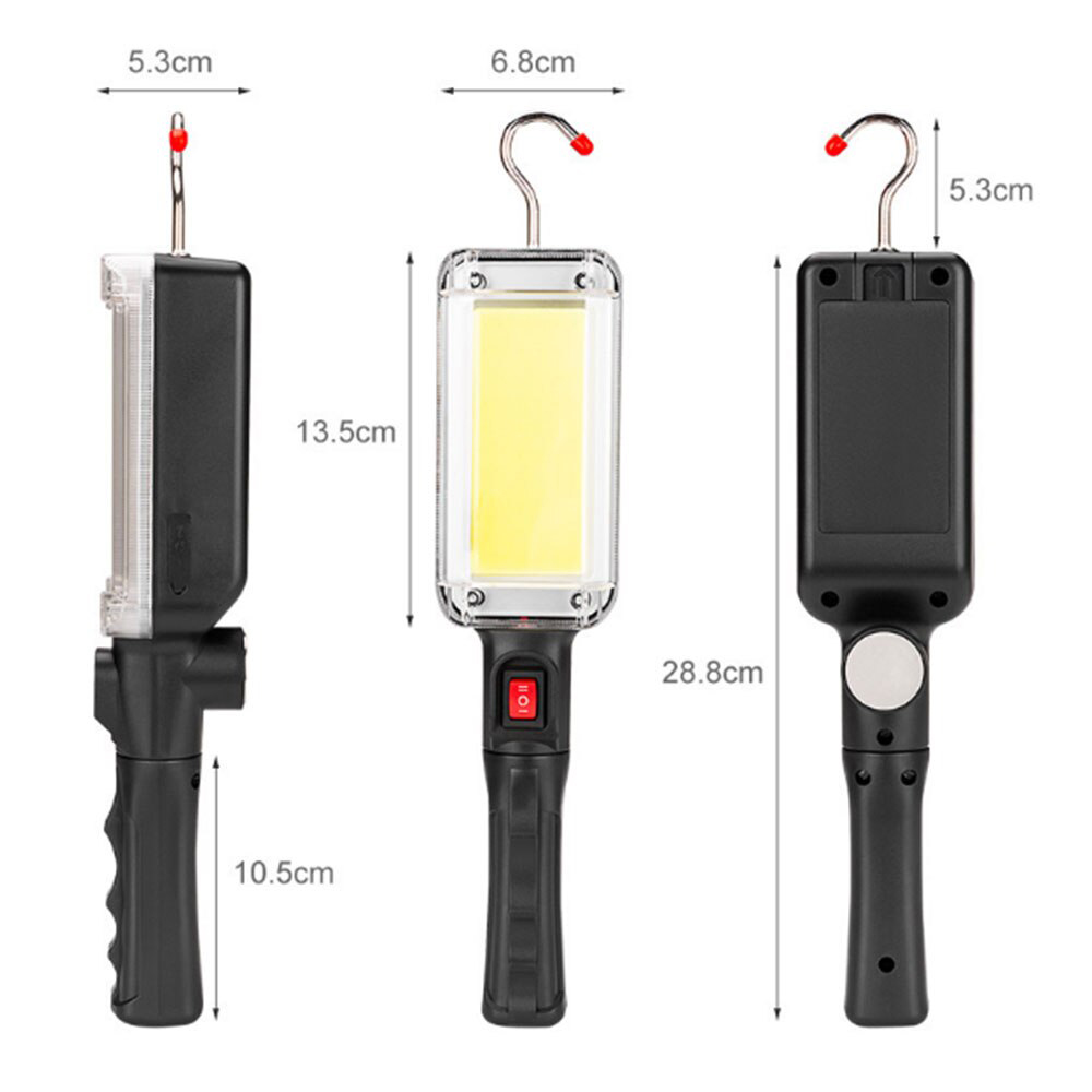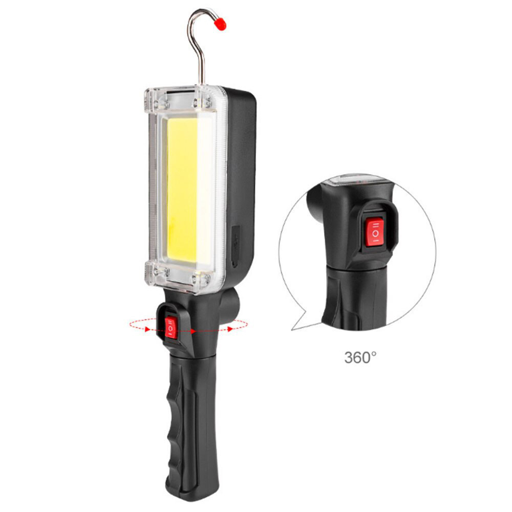 A munkalámpa sokoldalú megvilágítást kínál a sötét helyeken végzett tevékenységekhez. Ez a lámpa 360 fokban forgatható fogantyúval és oldalsó mágnessel rendelkezik a rögzítéshez. A mellékelt horog a lehető legjobb felhasználást kínálja a nehezen elérhető helyeken.