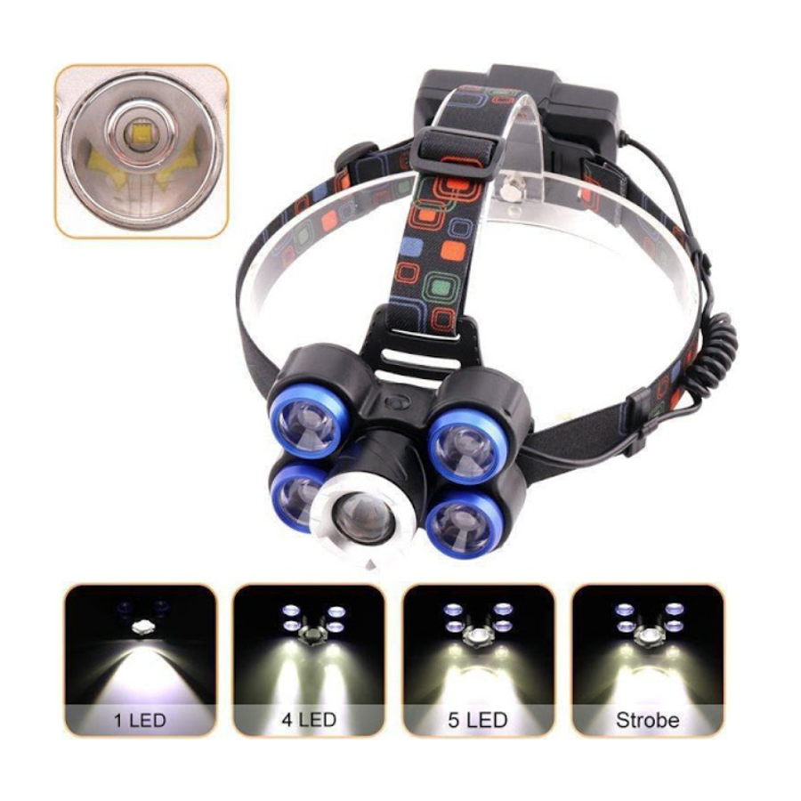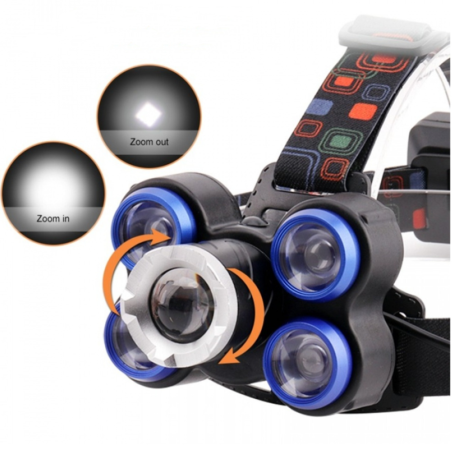 Állítható fejre rögzíthető fejlámpa 5 LED-del, akkumulátorral