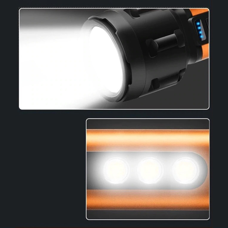 2 világítási fázis: LED zseblámpa, 3 COB zseblámpa