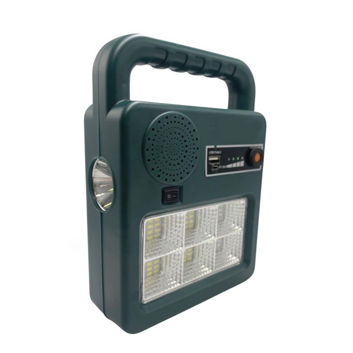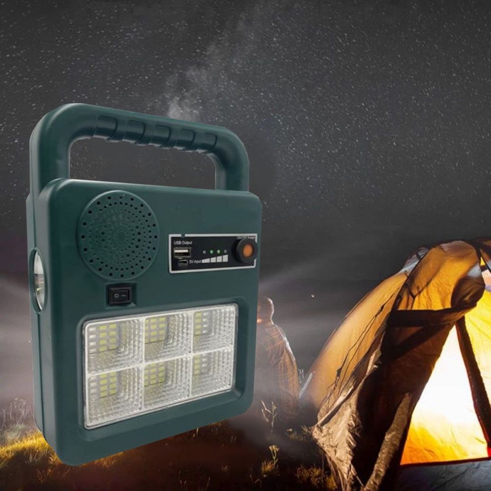 A könnyen használható, napelemes elemlámpa és hordozható hangszóró USB kimeneti porttal rendelkezik, amely mobiltelefonok vészhelyzeti áramforrásaként használható. Az USB kábel csatlakoztatható laptopokhoz, töltőfejekhez, mobil áramforrásokhoz, autós töltőhöz stb.