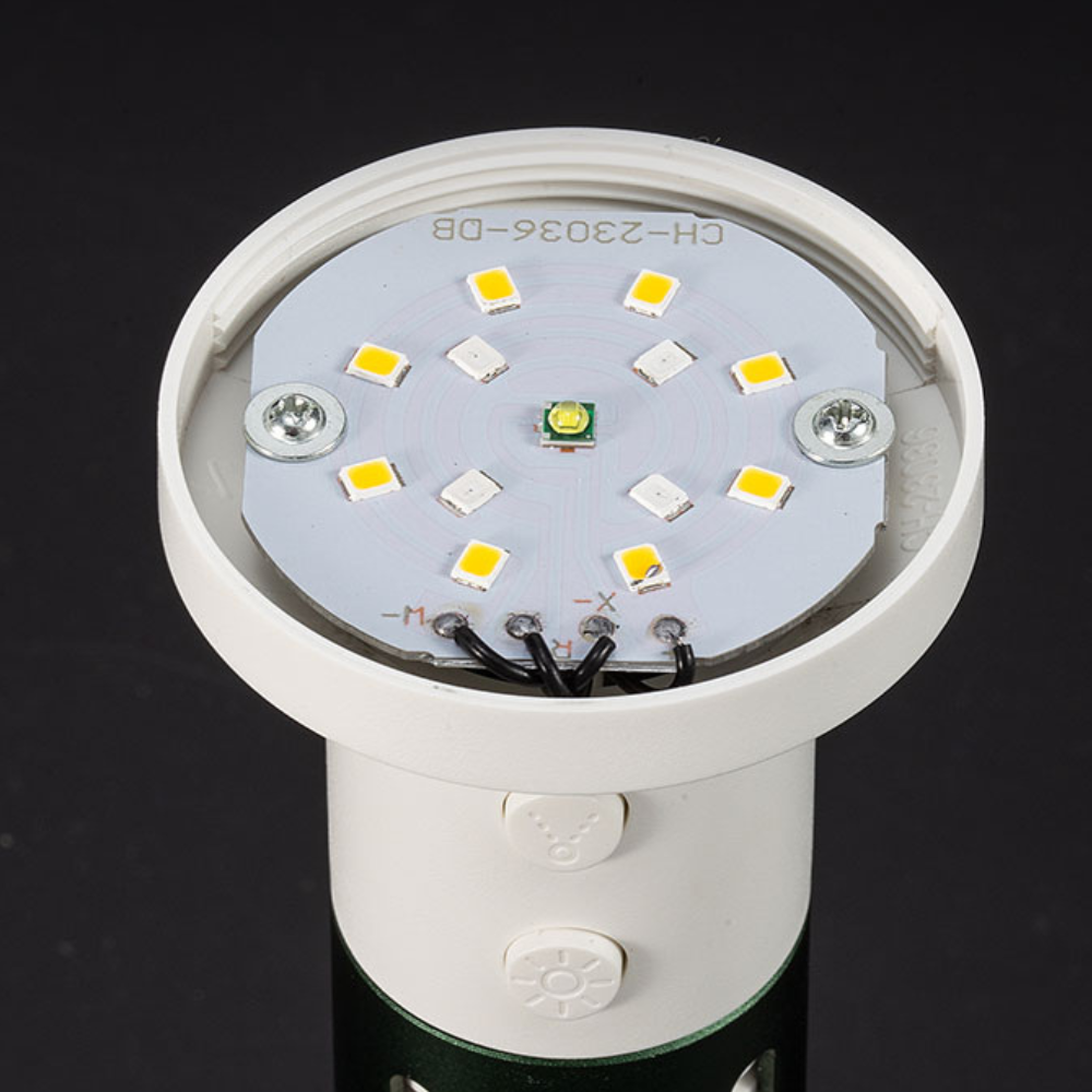 LED-ek száma: 13 (1 x fehér fény, 8 x sárga fény, 4 x piros fény)