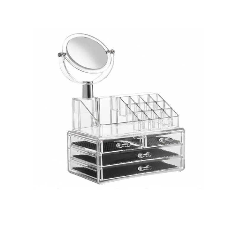 Akril kozmetikai rendszerező 4 fiókkal, 16 rekesszel és tükörrel
