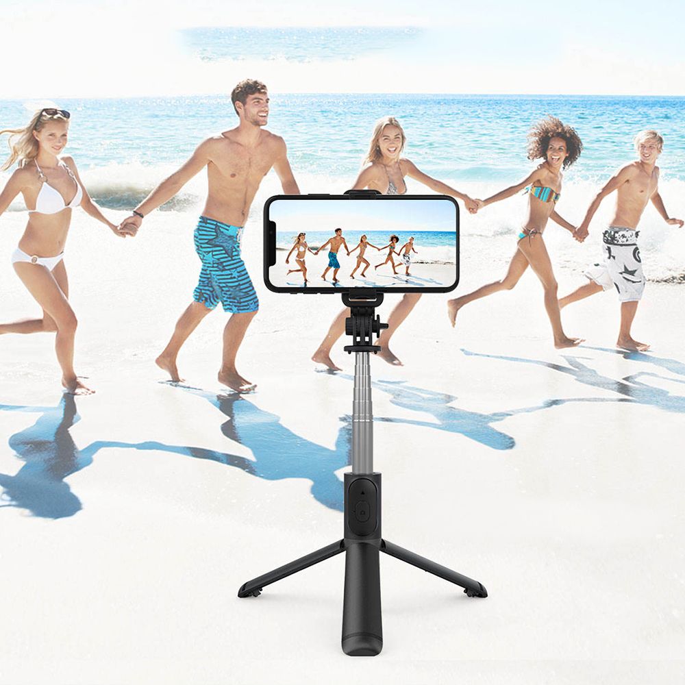 A támasz lábai csúszásmentesek, a mellékelt távirányító segítségével, mely bluetooth-on keresztül csatlakozik a telefonhoz, könnyedén fotózhatsz, ahol csak akarsz!