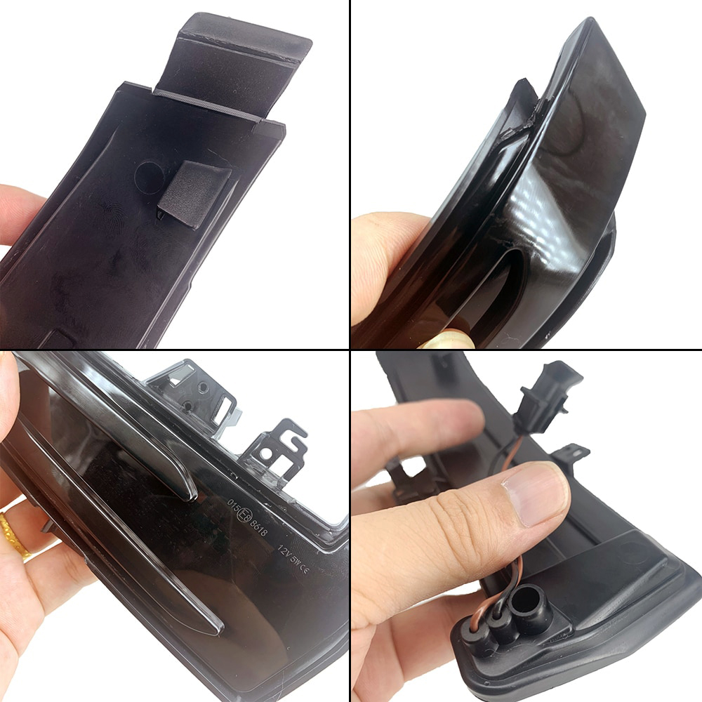 A készlet két dinamikus jelzőlámpát tartalmaz az oldalsó tükrökhöz. A telepítés plug & play típusú, a táblán lévő kiégett izzó hibák nélkül, de ennek ellenére javasoljuk a beszerelést egy hivatalos autószervizben.