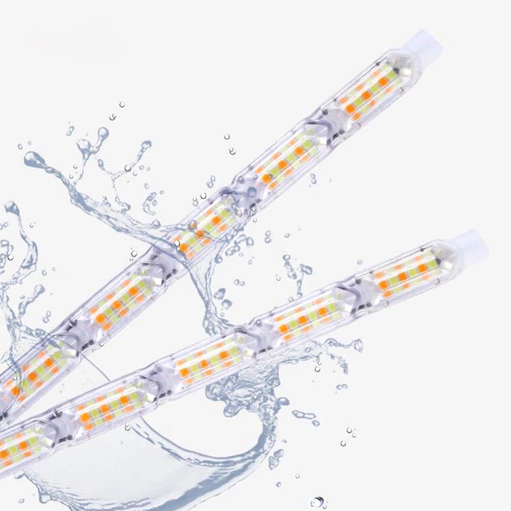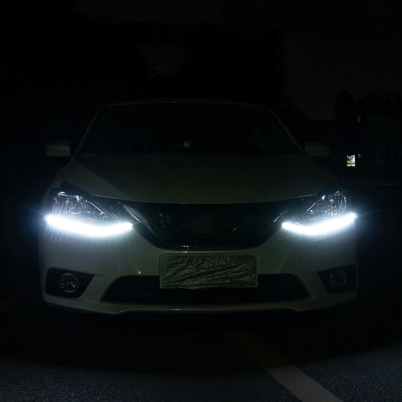 A készlet két rugalmas LED szalagot, szekvenciális jelzéssel ellátott nappali menetfényt tartalmaz, amely kompatibilis bármilyen típusú DC12V-os autóval.