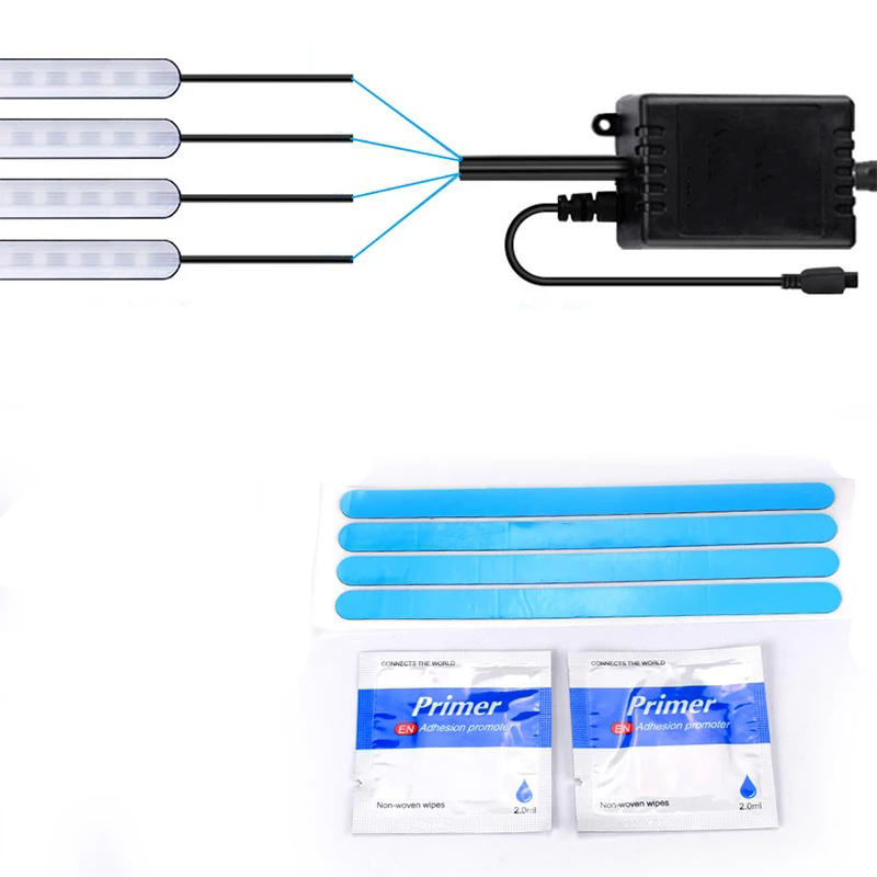 A szalag vízálló, a LED-eket PVC burkolat védi. Ezek a szalagok a járműben bárhol felszerelhetők, 12 V-ról táplálva.