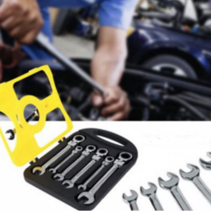 7 db gyűrűs kulcs készlet, csuklós, dupla racsnis