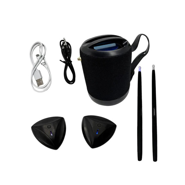 A szett ideális kütyü azok számára, akik meg szeretnének tanulni dobolni. A készlet tartalmaz két dobotverőt, egy hordozható Bluetooth hangszórót és két érzékelős pedált.