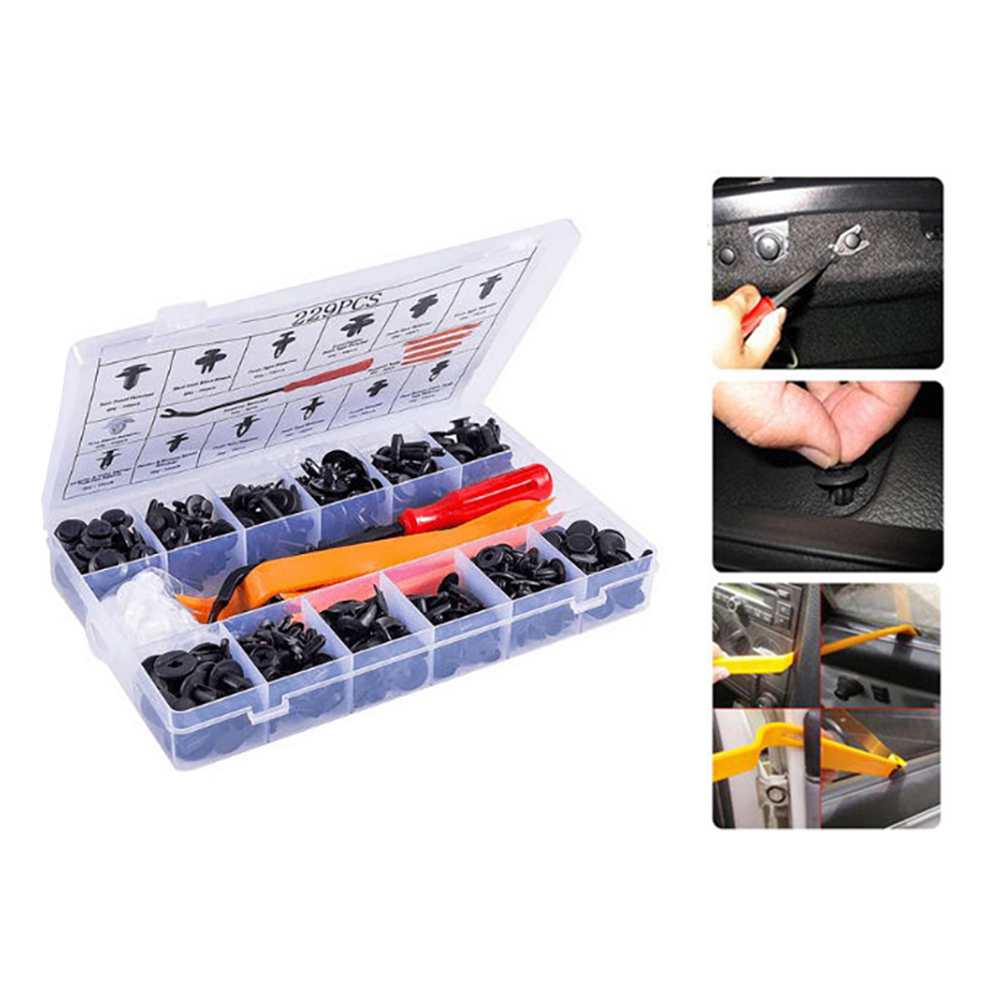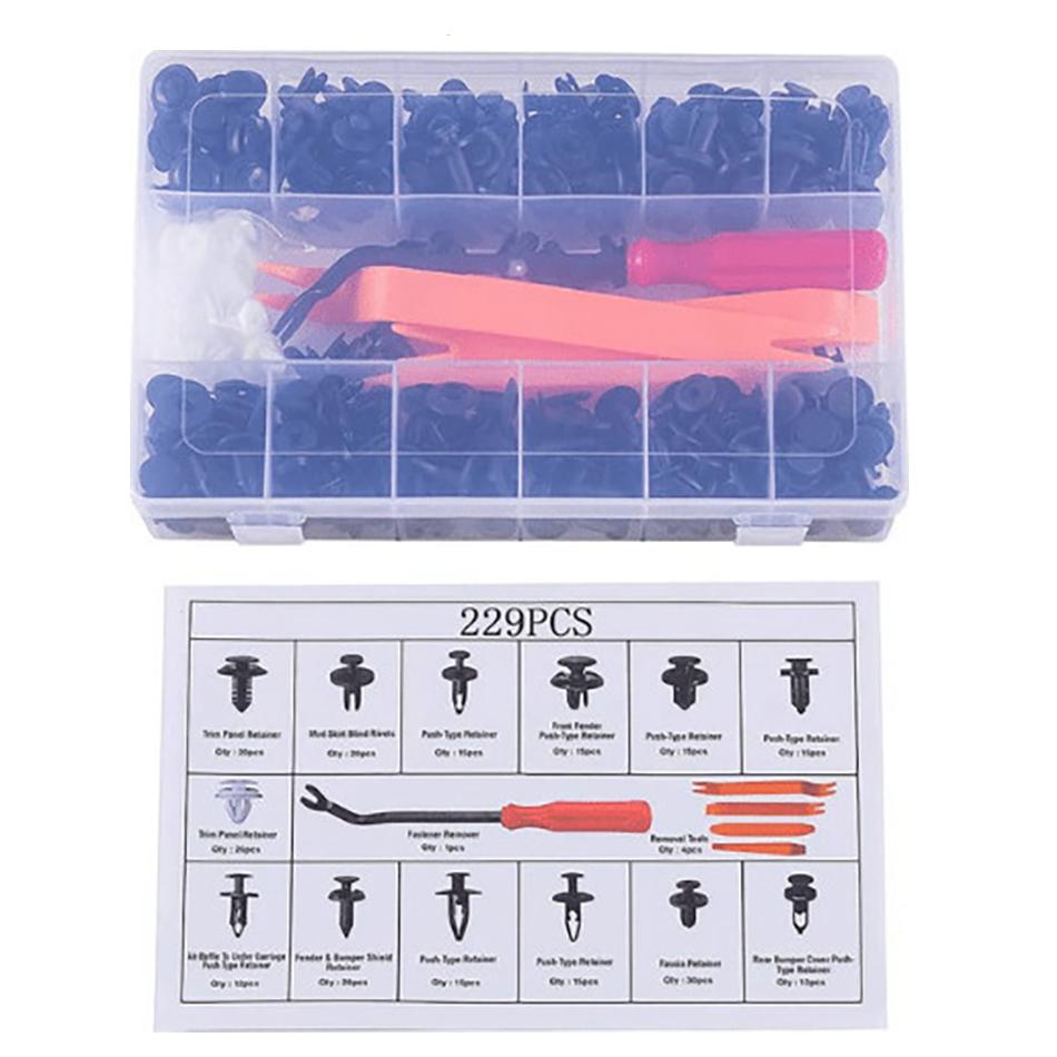 Az autóbilincs készlet 229 alkatrészt tartalmaz, és tartalmaz eszközöket a rögzítők eltávolításához, valamint négy szerszámot az autótartozékok belülről történő eltávolításához. Az anyag kiváló minőségű, rezgéseknek és ütéseknek ellenáll. A 229 darab elválasztókkal ellátott műanyag dobozban kerül forgalomba, így könnyű lesz megtalálni őket.