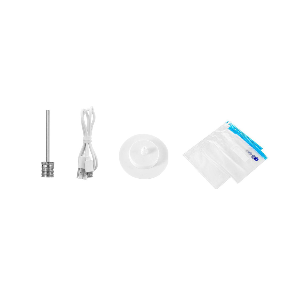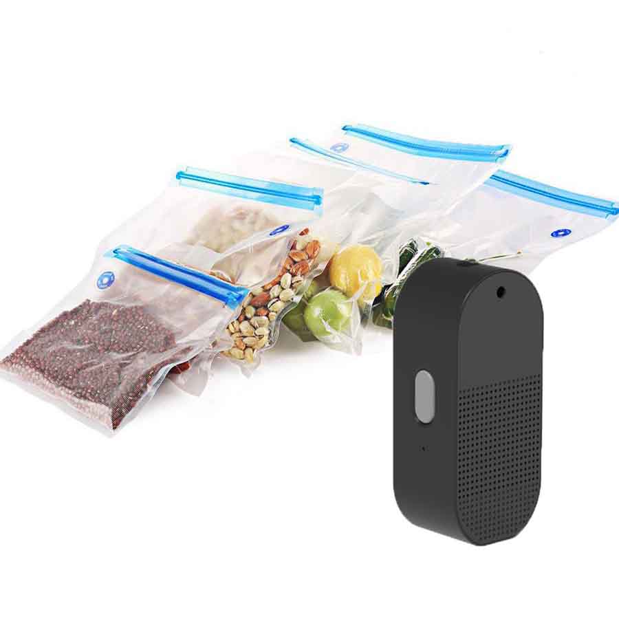 Az élelmiszerek porszívózására szolgáló készlet egy mini elektromos készüléket és 5 különböző méretű zacskót tartalmaz, minden típusú élelmiszer vákuumcsomagolásához. Használatuk nagyon egyszerű.