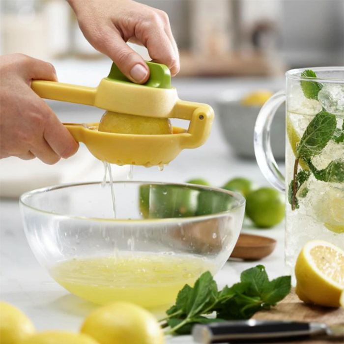 Az egyedülálló kettős hatású kialakítás lehetővé teszi a gyümölcs levét egyetlen mozdulattal, mindössze a gyümölcs felét kell az edénybe helyezni, a facsaró tetejét rögzíteni és a fogantyút elfordítani.