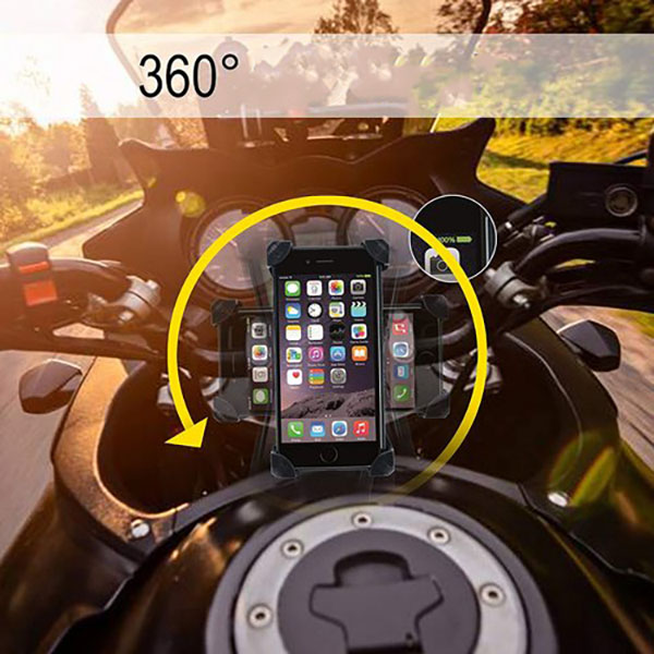A telefonhoz való kerékpár- vagy motortartó töltővel is rendelkezik USB-nyílással, és a 360 fokos elforgatásnak köszönhetően 3,5-6,5 hüvelykes telefonokkal kompatibilisre állítható, tetszőleges szögben is.