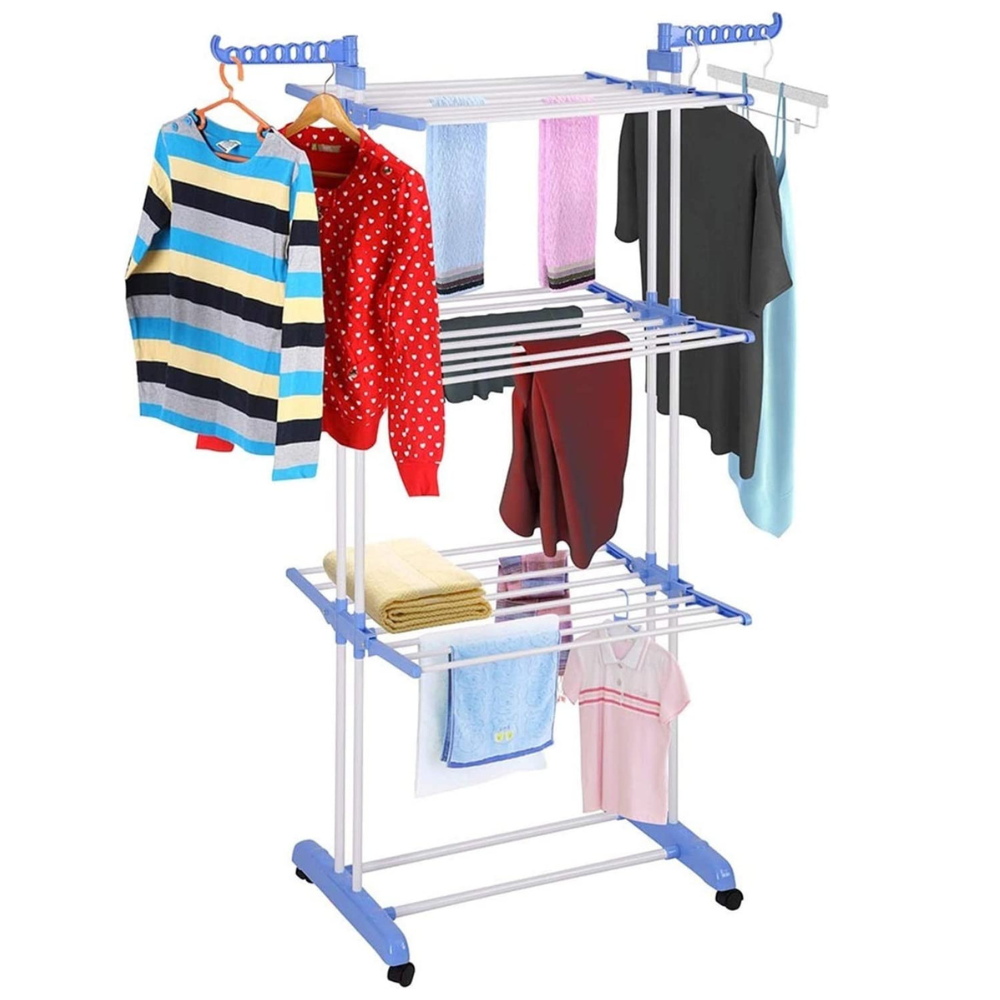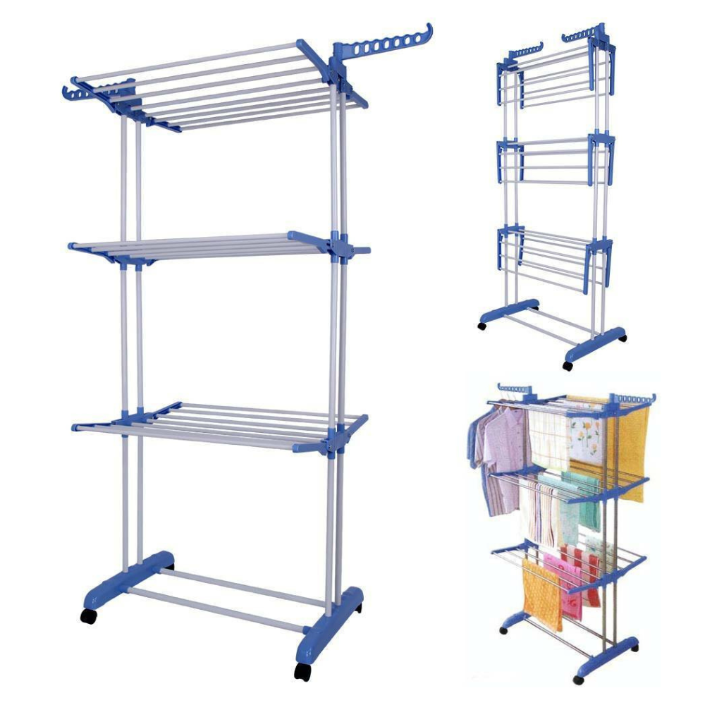 A szárítógép összecsukható és kivehető, háromszintes a ruhanemű szárítására. Kis méretének köszönhetően a termék nagyon könnyen mozgatható.