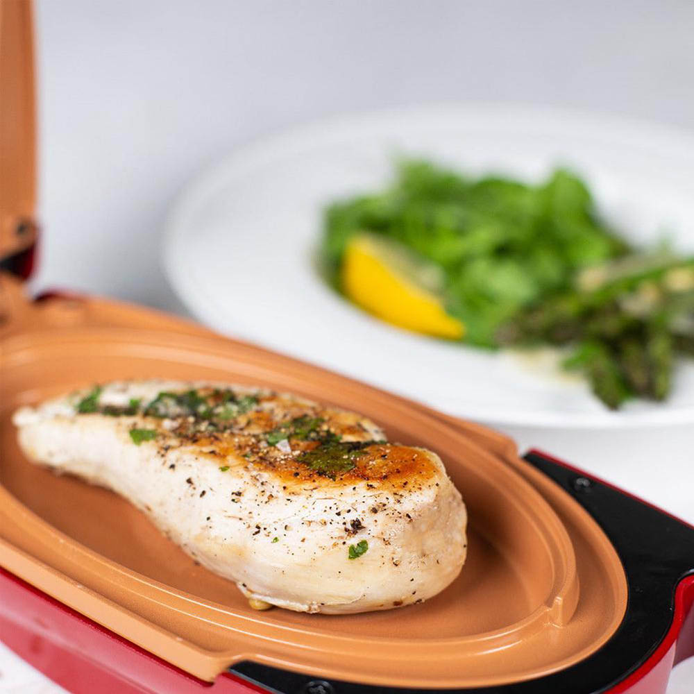 A Red Copper elektromos serpenyője a gyors főzéshez tapadásmentes, egyenletesen és nagyon gyorsan felmelegszik, jelentősen lerövidítve a főzési időt.